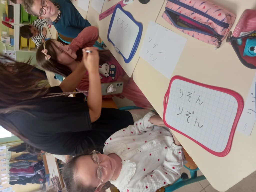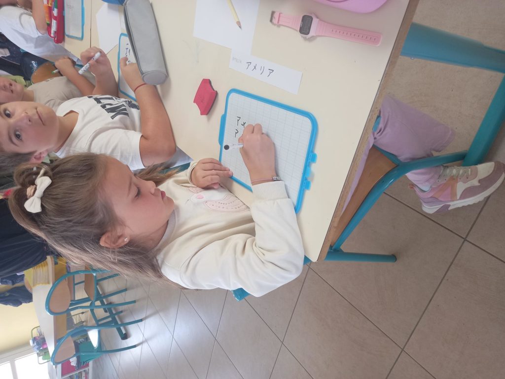 Les élèves ont écrit leur prénom en japonais ainsi que des mots comme papa, maman, Père Ceyrac….Un vrai bon moment de découvertes qui leur a bien plu!