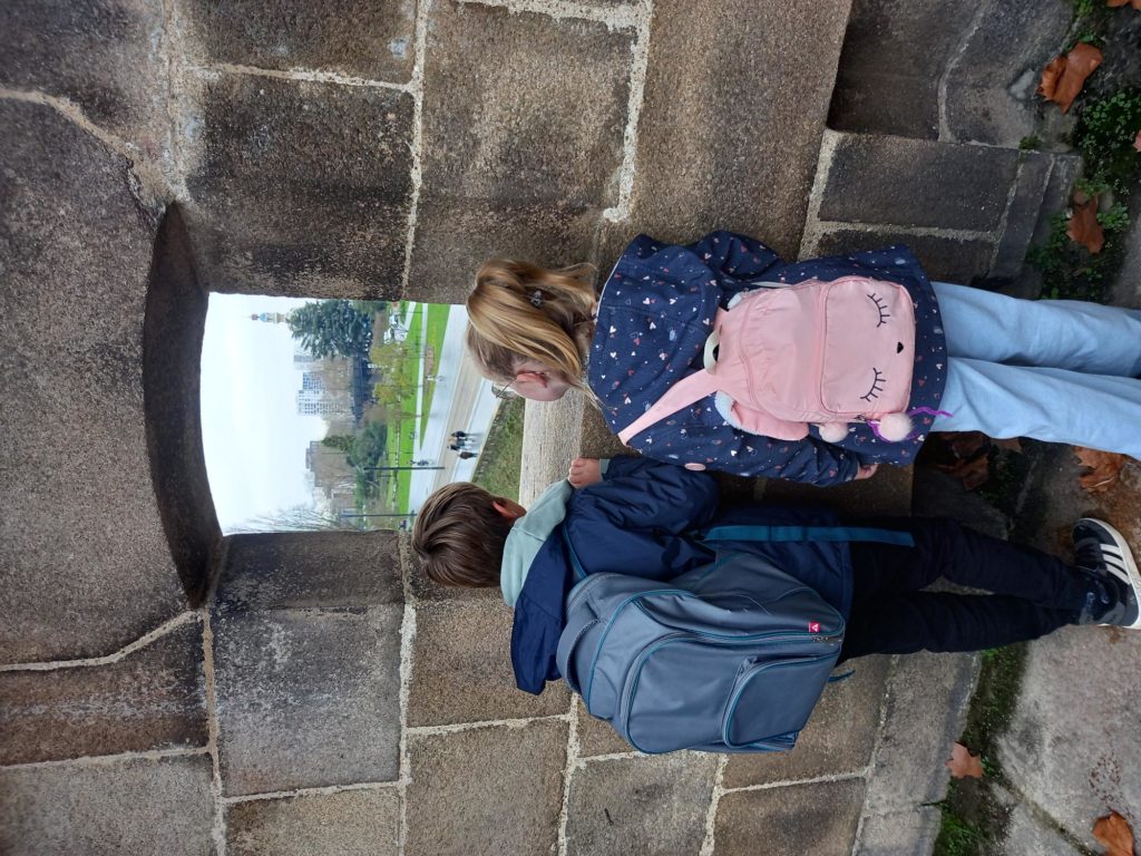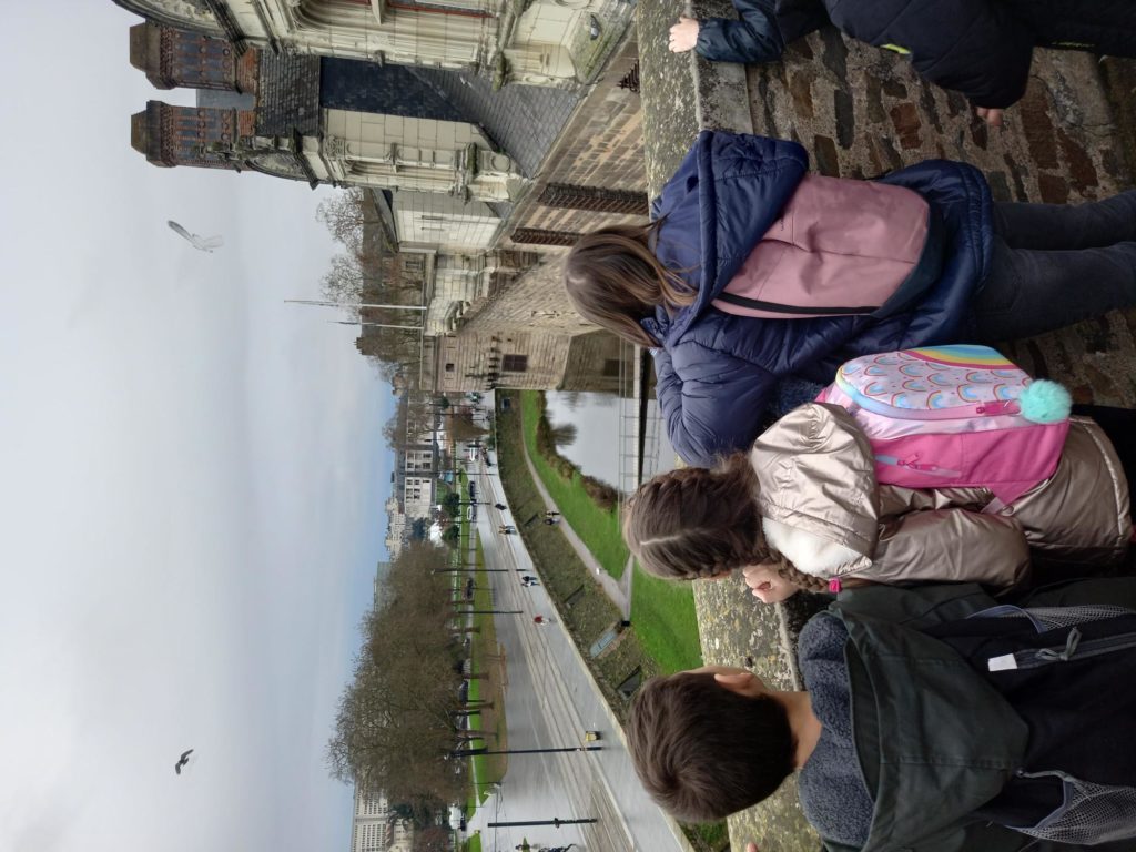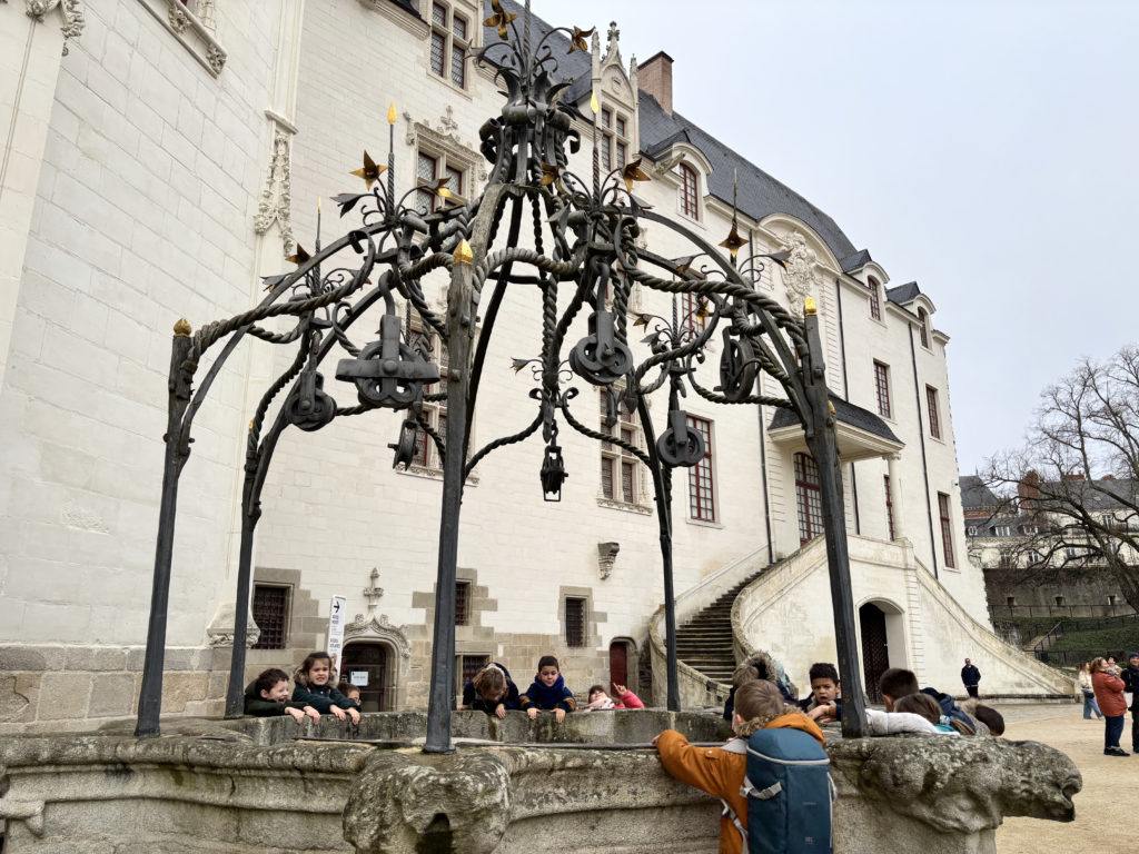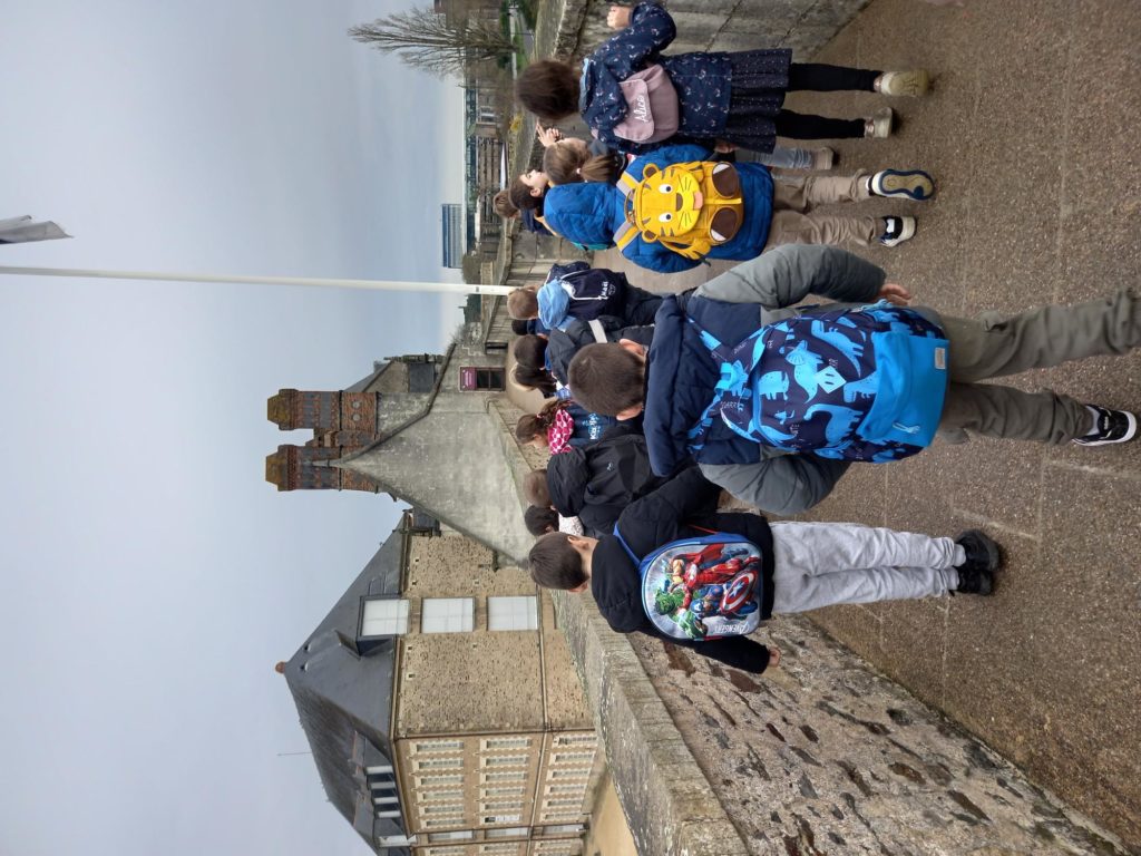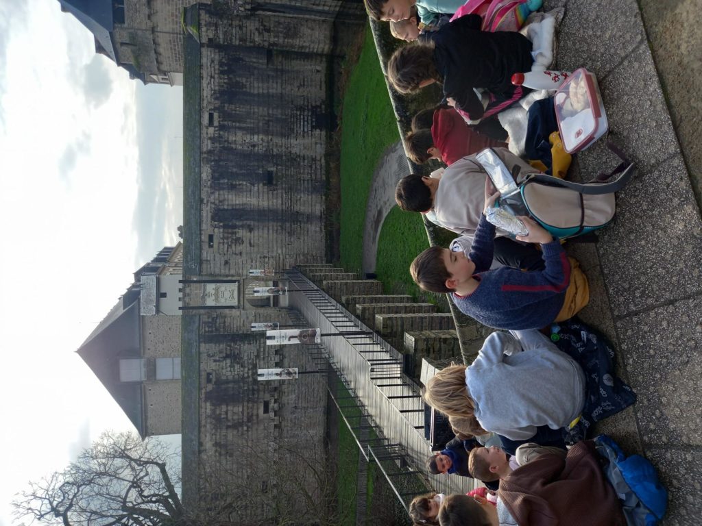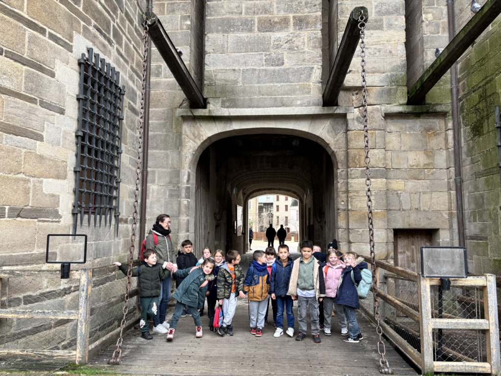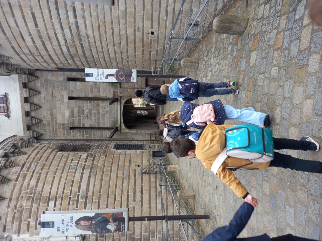 2/ Découvrir le château Anne de Bretagne. En classe aussi, nous avions travaillé le lexique du château fort: pont-levis, mâchicoulis, meurtrières, remparts….Ainsi, nous avons fait le lien avec la classe en parcourant le château.
