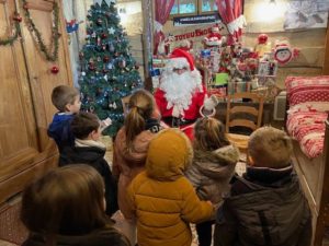 Nous avons été accueillis par la mère Noël et le père Noël dans son chalet : il nous a trouvé très sages et nous a offert un bonbon.