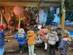 Ensuite, nous avons assisté à un spectacle : »Noël et le sable des rêves » avec Mimi la lutine, Enola, le conductor et le marchand de sable.