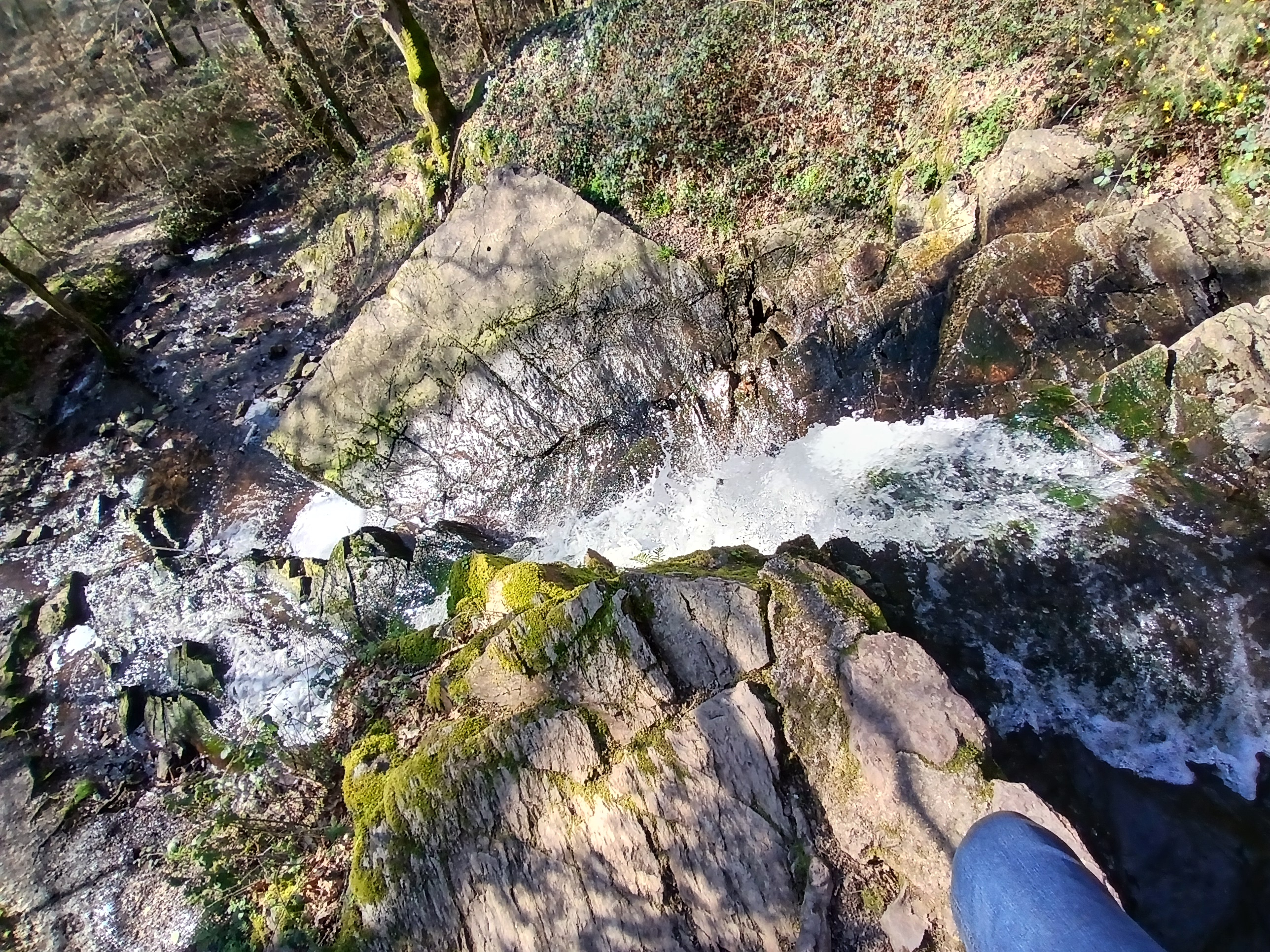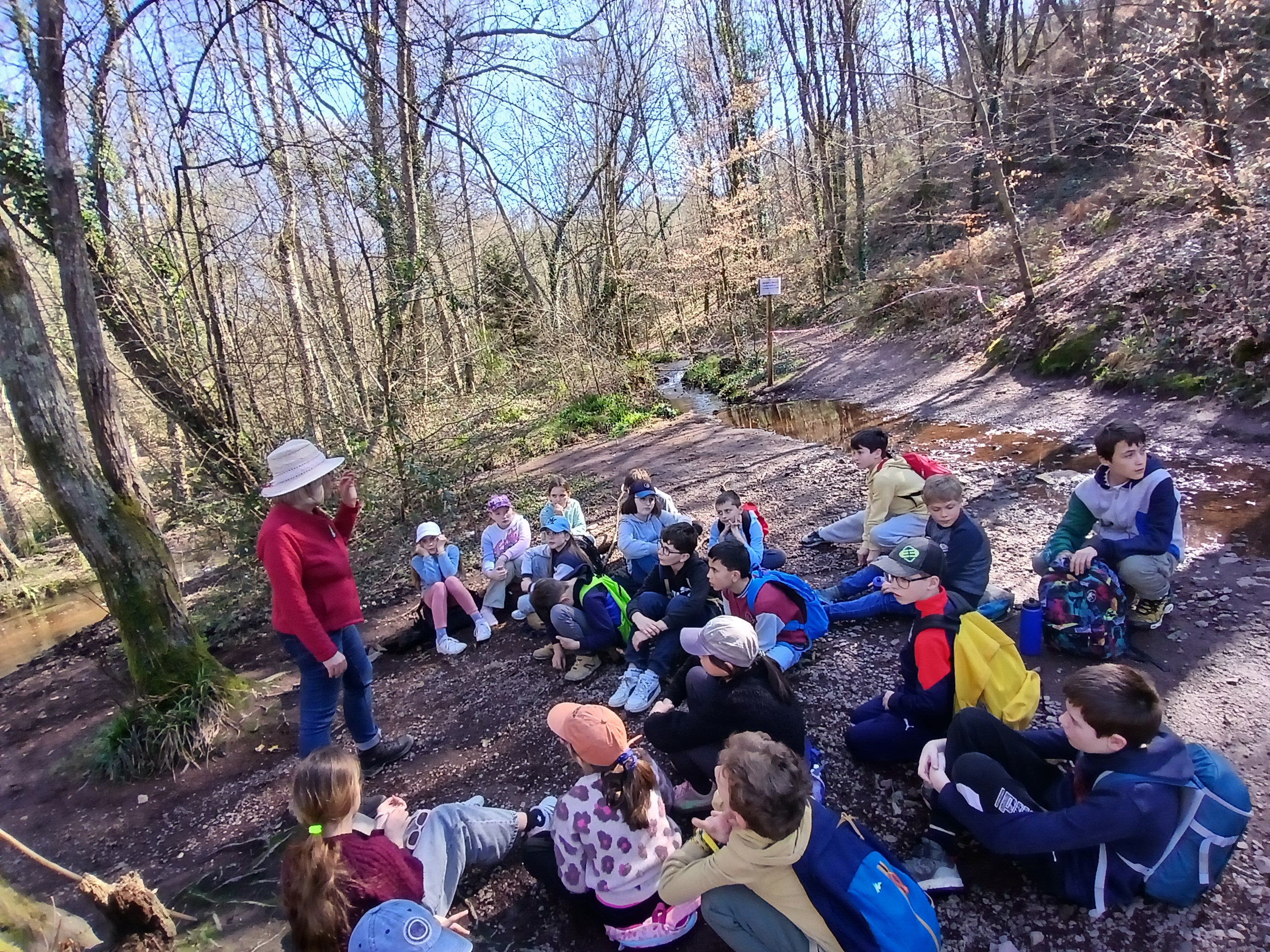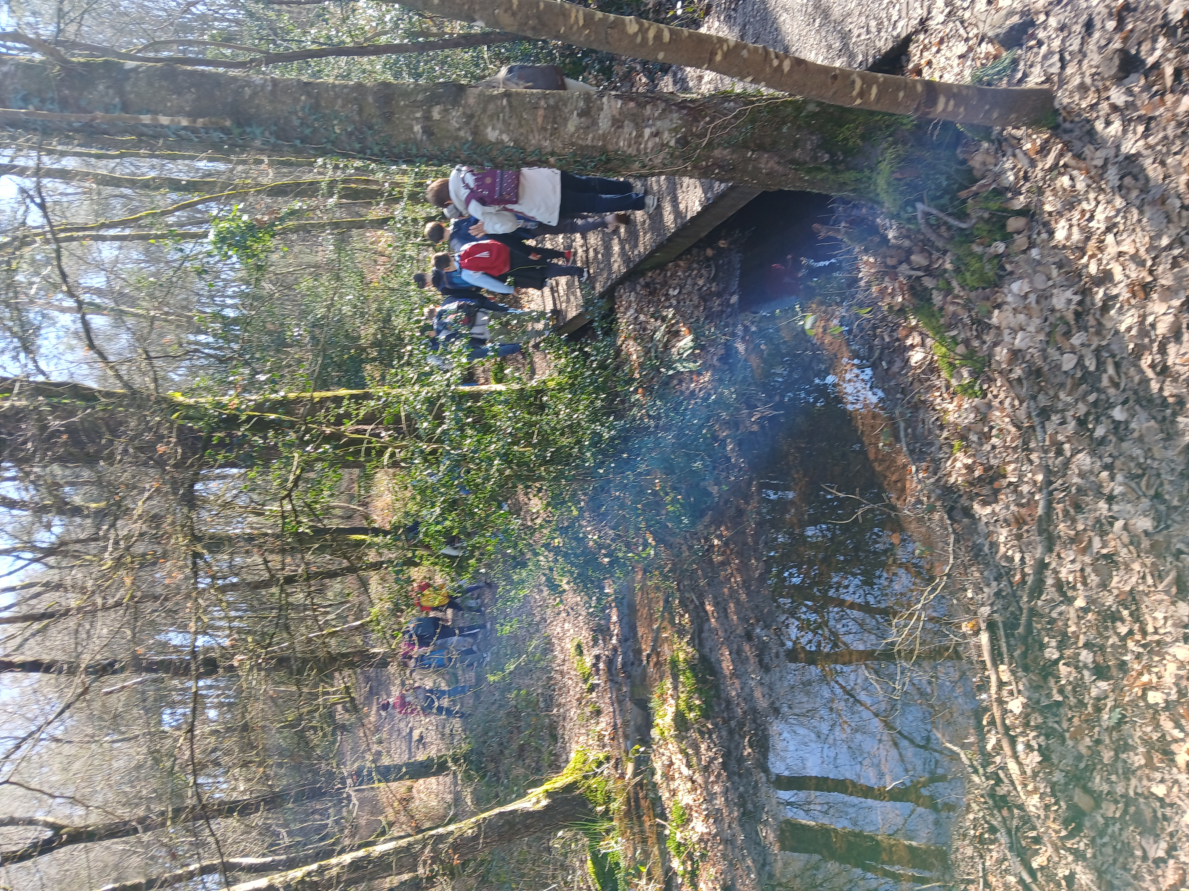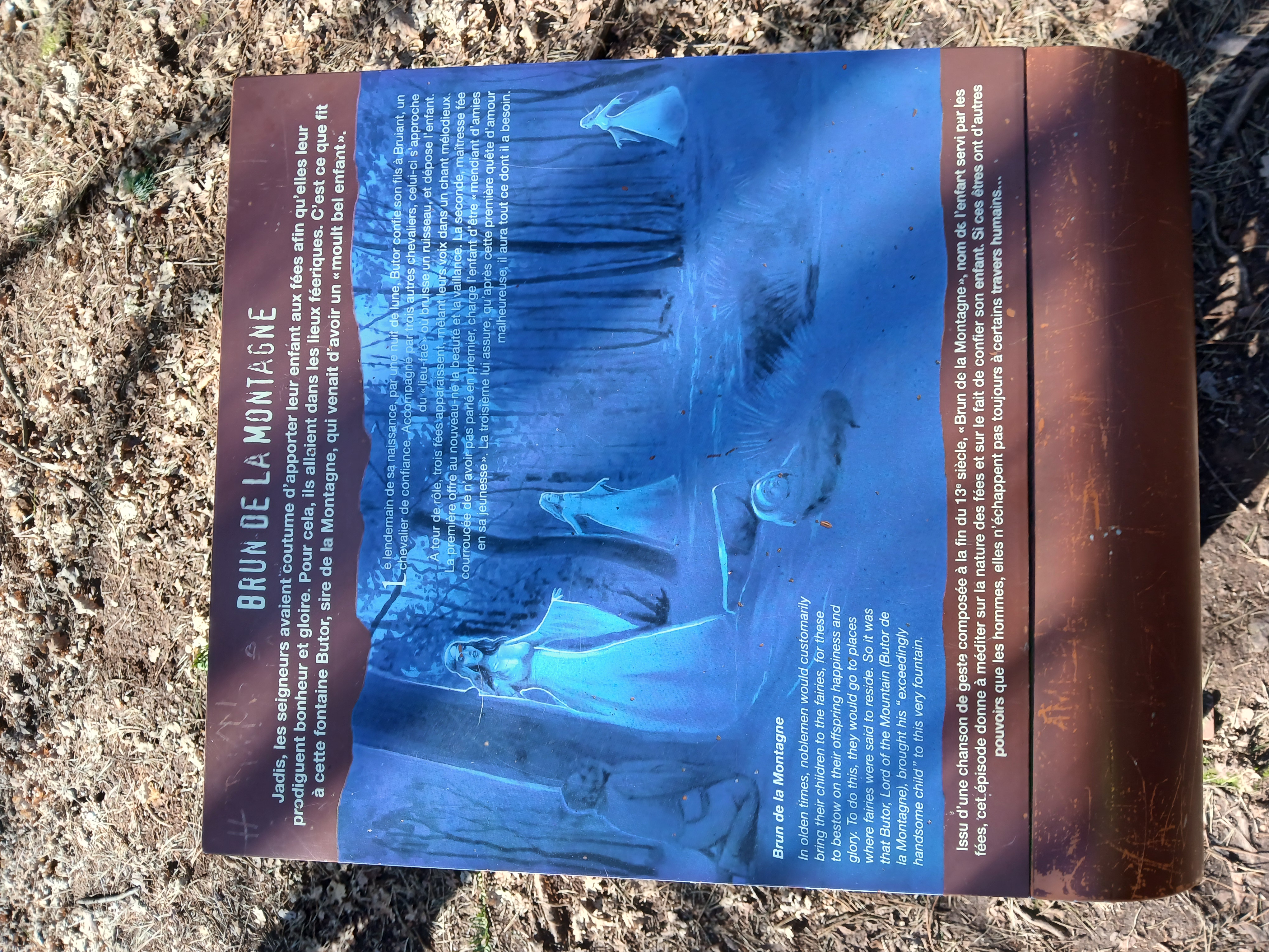 Après notre pique-nique au soleil, nous sommes repartis en forêt, vers le Val sans retour pour d’autres histoires et lieux : un rocher en forme de cœur, d’autres en forme de trône de roi, une fontaine magique et aussi un arbre d’or.