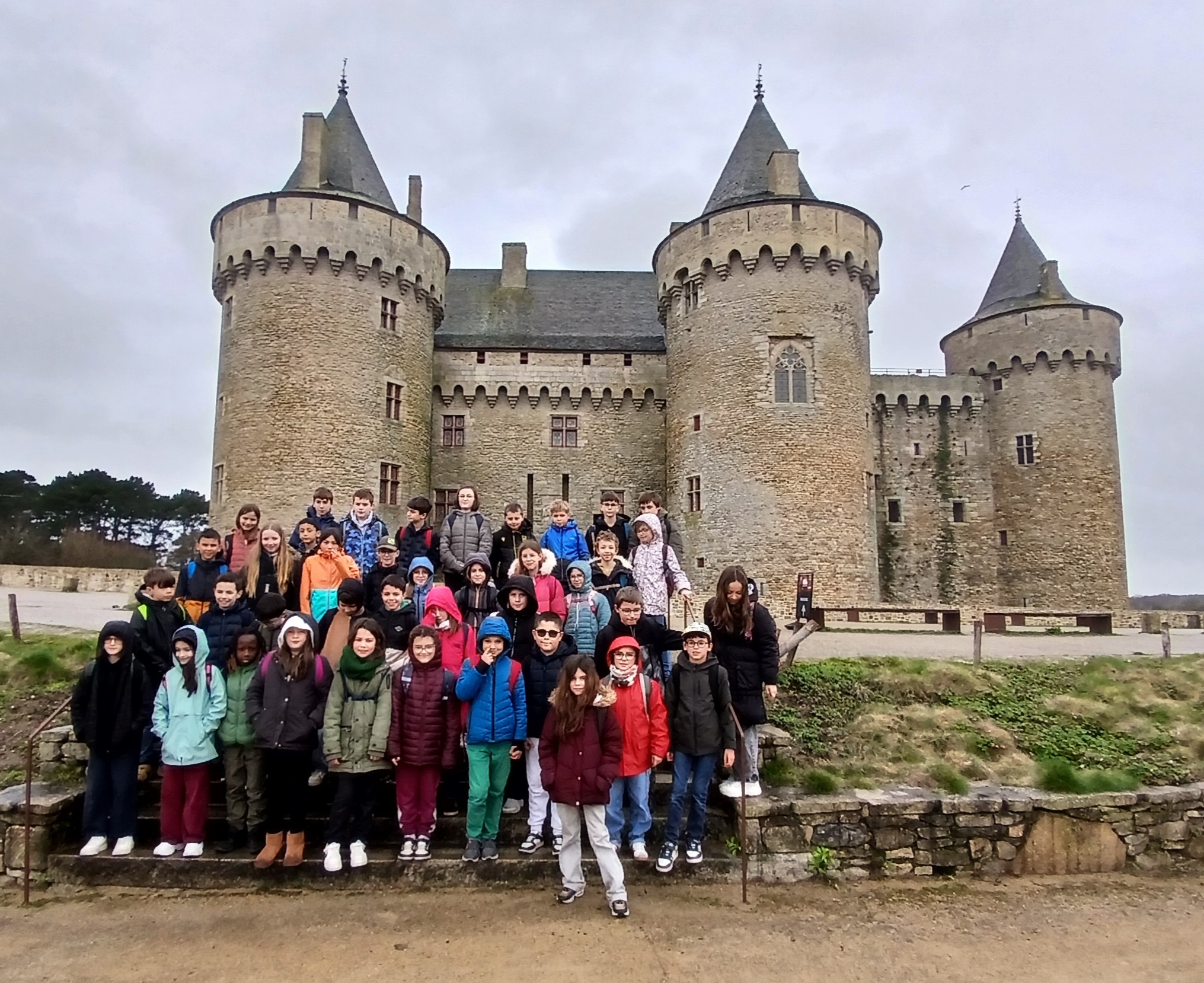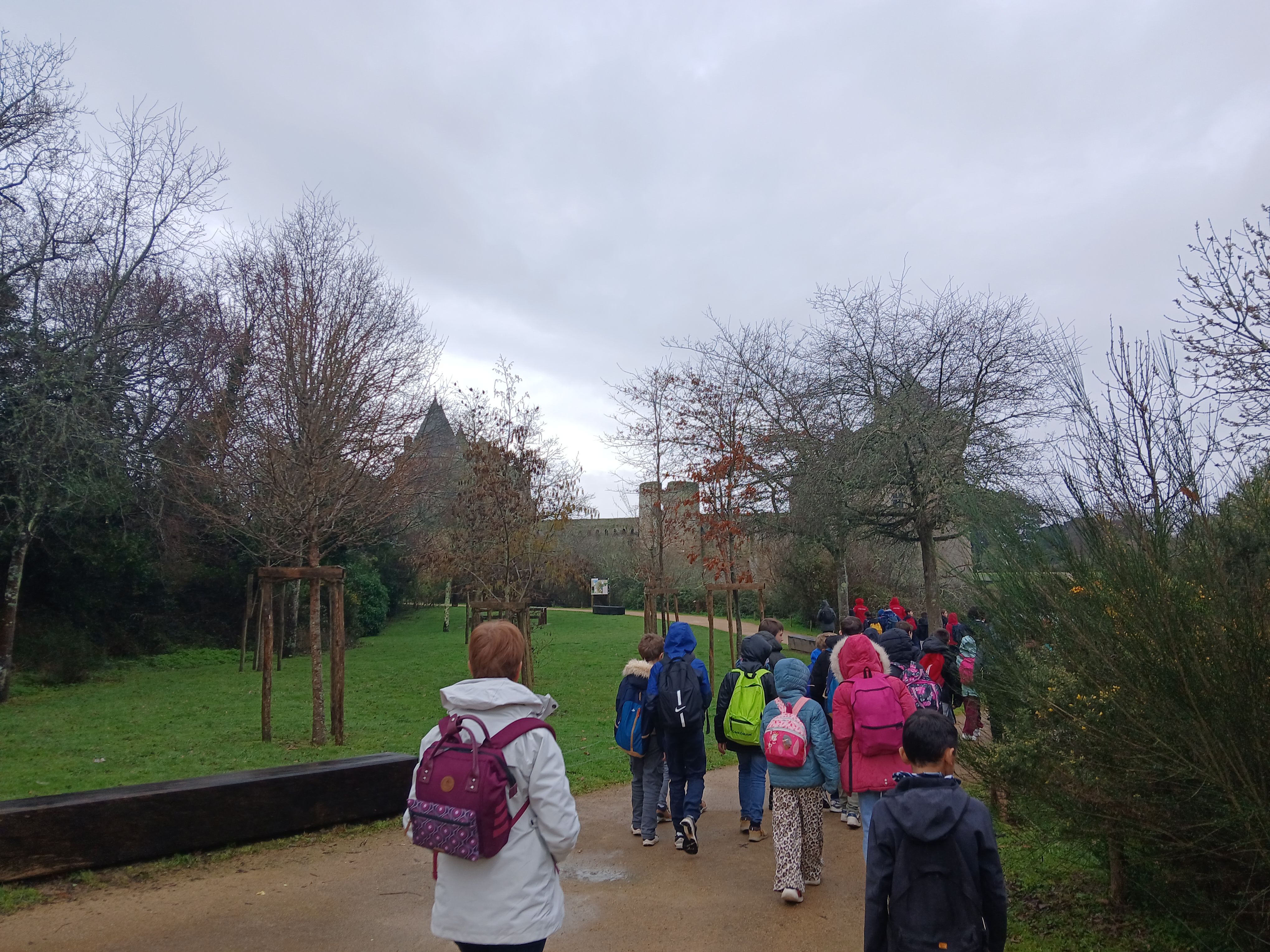 Une fois les valises chargées dans le car et les pique-niques dans les petits sacs à dos, nous avons pris le car en direction de Suscinio. Une pluie fine s’était invitée mais cela ne nous a pas gênés pour les 2 activités de la journée dans le château.