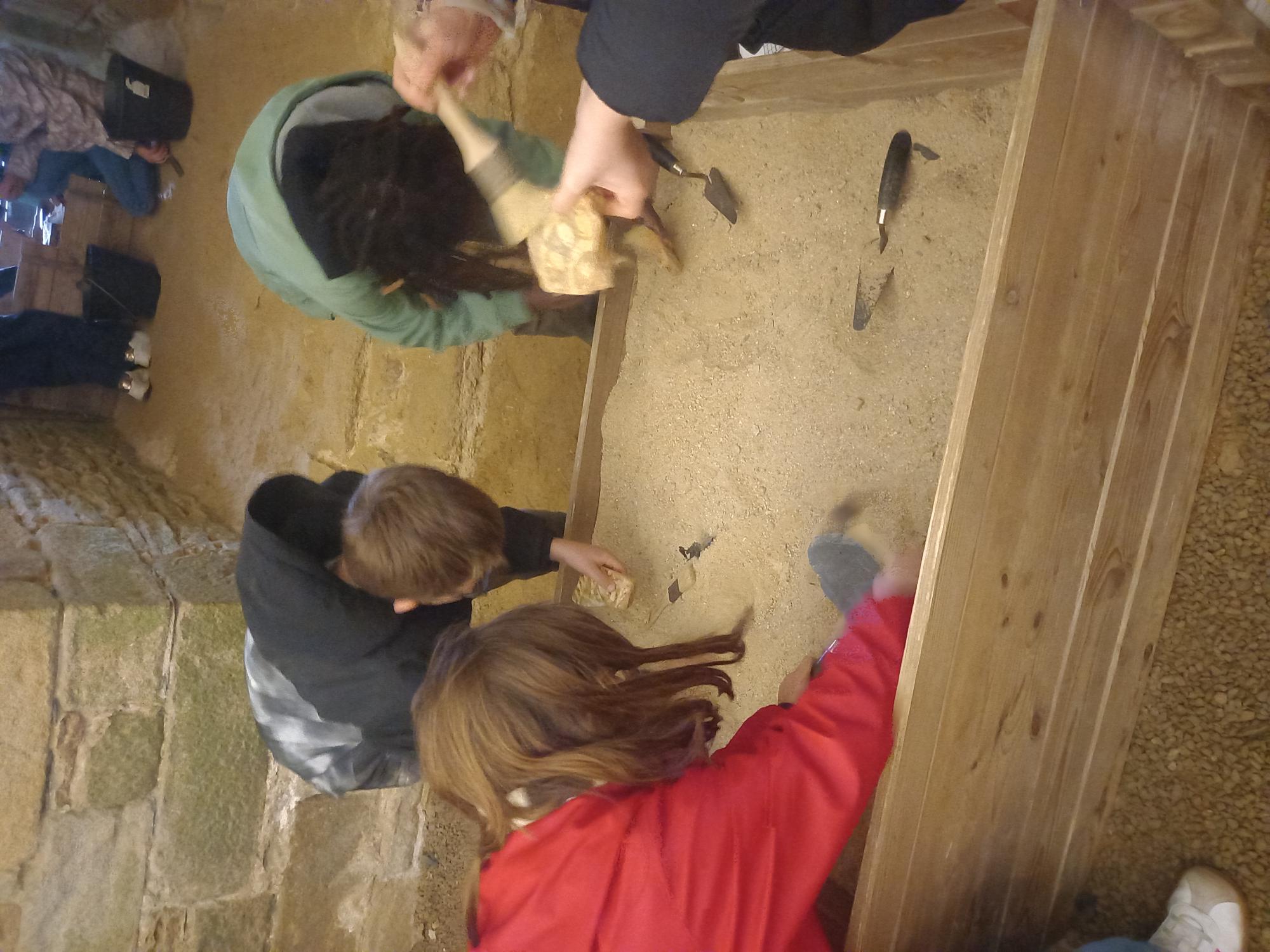 Nous avons tour à tour découvert l’univers du roi Arthur et des chevaliers de la table ronde, visité les différentes salles du château avec des costumes d’époque dans une salle et aussi vécu une activité d’archéologie pour retrouver des objets enfouis.