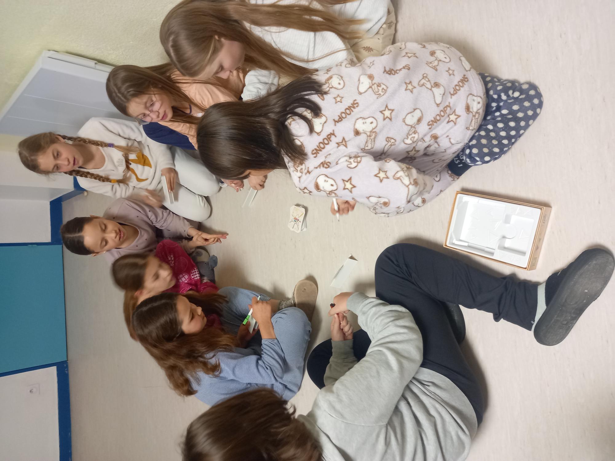 Nous avions le choix entre des jeux de société avec Stéphanie et Cécile ou des jeux en groupe avec Elisabeth et Didier. Quelques enfants on changé de groupe en cours de veillée pour découvrir les 2 propositions. Tout le monde en a bien profité avant d’aller se coucher pour être frais et dispo pour la dernière journée.