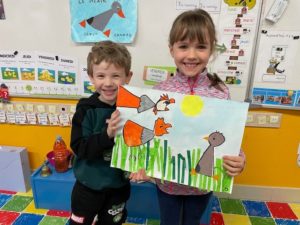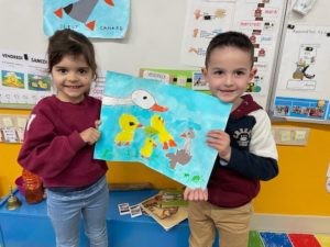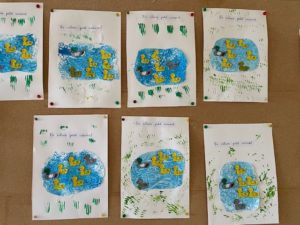 Au début de cette période, nous avons découvert le conte « Le Vilain Petit Canard » à partir de l’album d’Attilio Cassinelli. Nous avons appris à dessiner des canards pour pouvoir créer un Kamishibaï. Nous nous sommes entraînés à le « lire » devant un public.