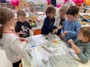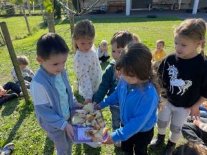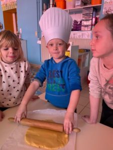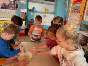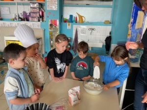 Cette semaine, à l’occasion de la semaine du goût, nous avons cuisiné trois recettes : les galettes du Petit Chaperon Rouge, le gâteau chocisson des Trois Petits Cochons et le gâteau de Blanche Neige. Nous avons passé de bons moments lors de la préparation … et lors de la dégustation.