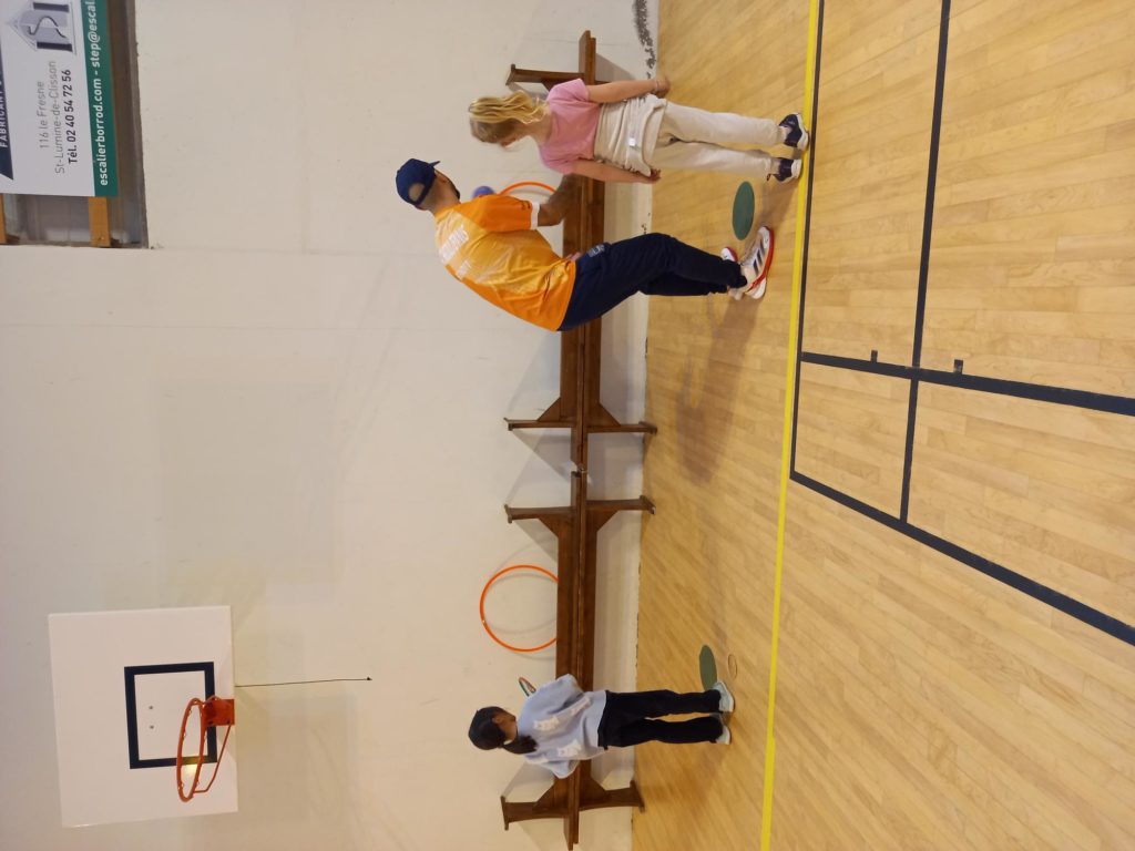 Ainsi, les animateurs sont venus proposer des ateliers dans la salle de sport : agilité, échanges de balle de différentes façons, cibler avec la balle …. Actions et coordinations sont au RDV… ce n’est pas toujours facile mais ils essaient et progressent à leur rythme!